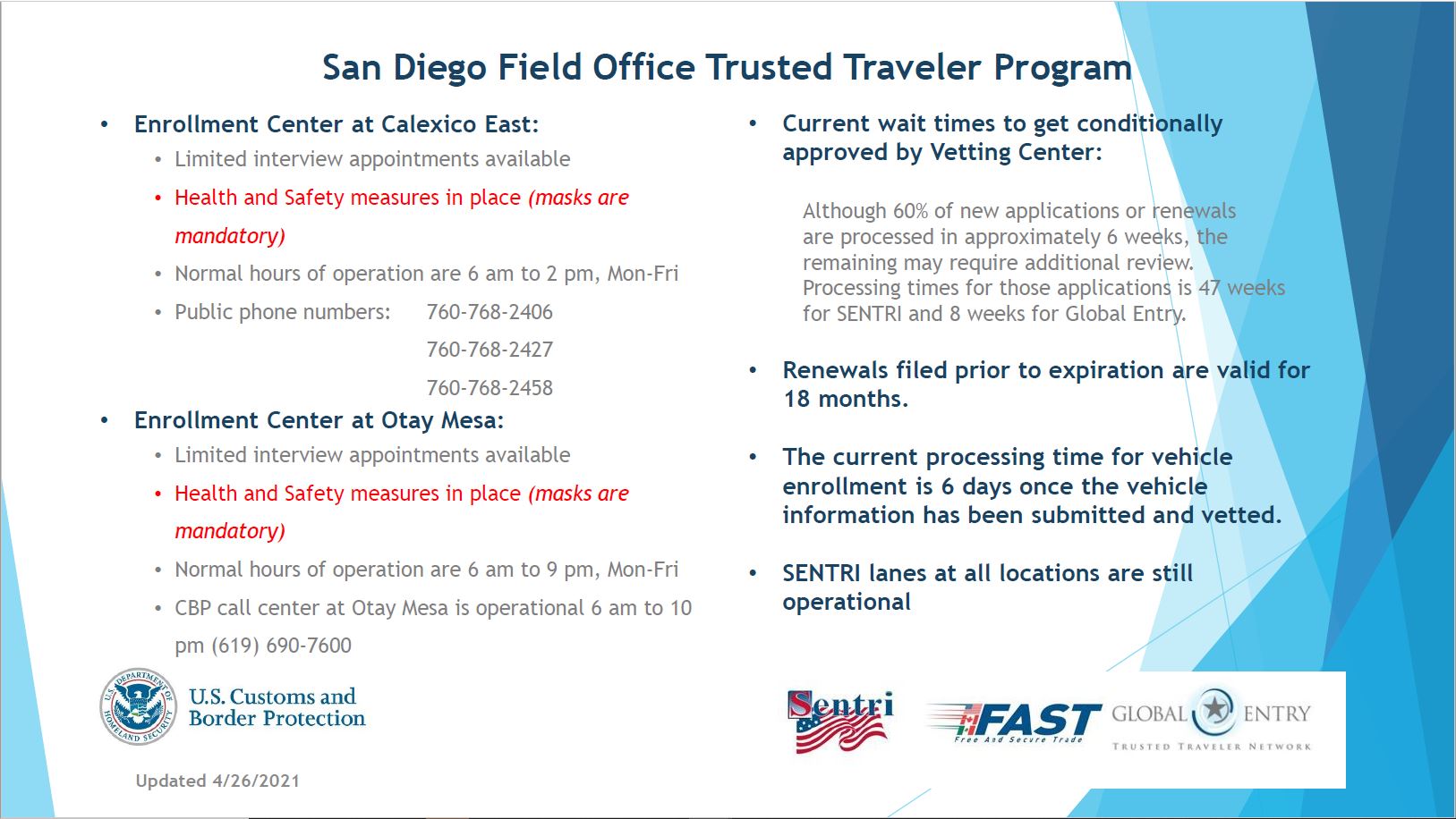 Port Director Of Calexico Port Of Entry On Twitter Still Not A Sentri Or Global Entry Member Sign Up Today At Our Calexico East Enrollment Center Please Review Our Hours Of Operation
