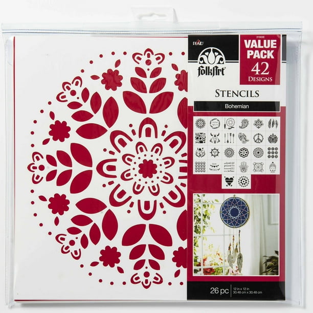 Folkart Paper Stencil Value Pack Bohemian 12 In X 12 In 26 Piece Walmart Com